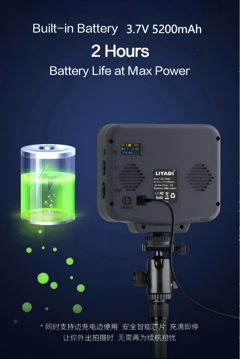 - Long Battery Life: 2 hours (max power) to 25 hours (min power) of continuous use, adapting to long shoots or on-the-go creativity.