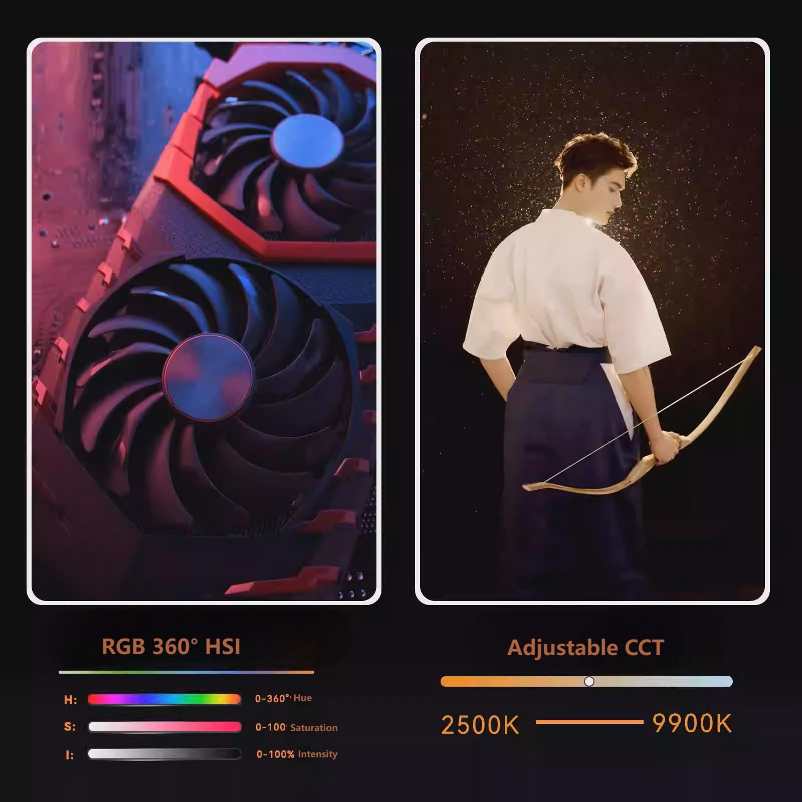 color temperature adjustment from 2500K to 9900K, Ra > 95, 24 special effect modes,