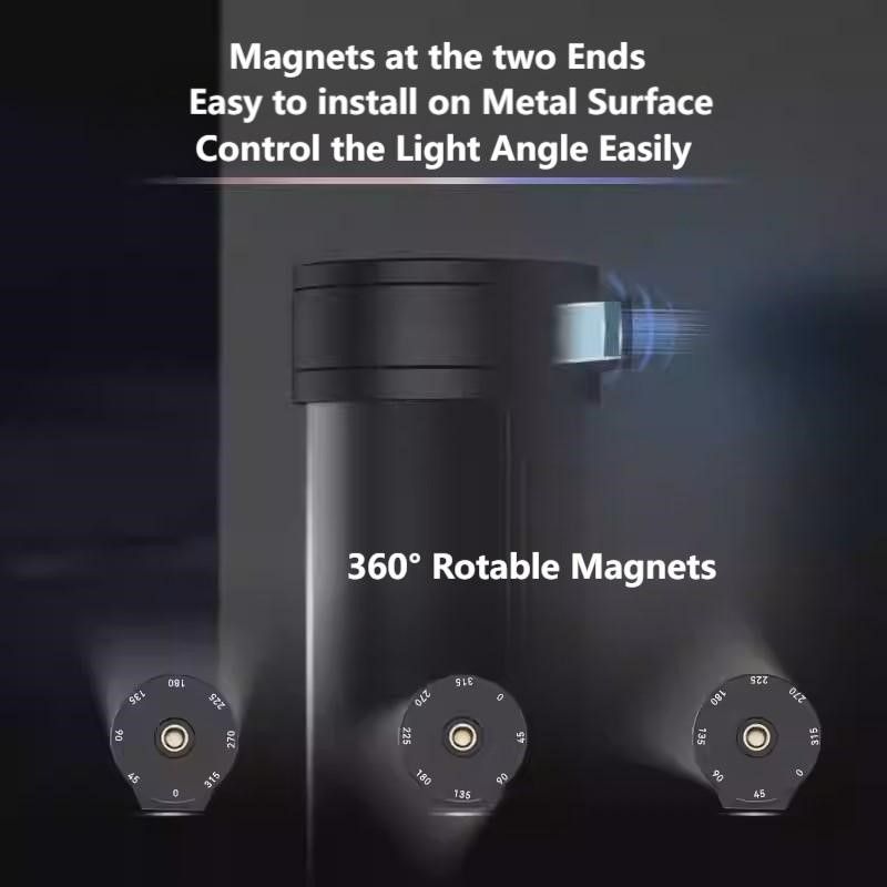The light is designed with built-in magnets at both ends, can rotate 360 degrees, and has angle auxiliary locking,