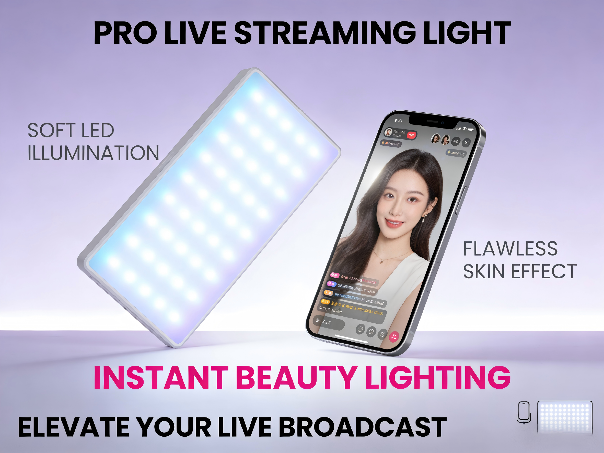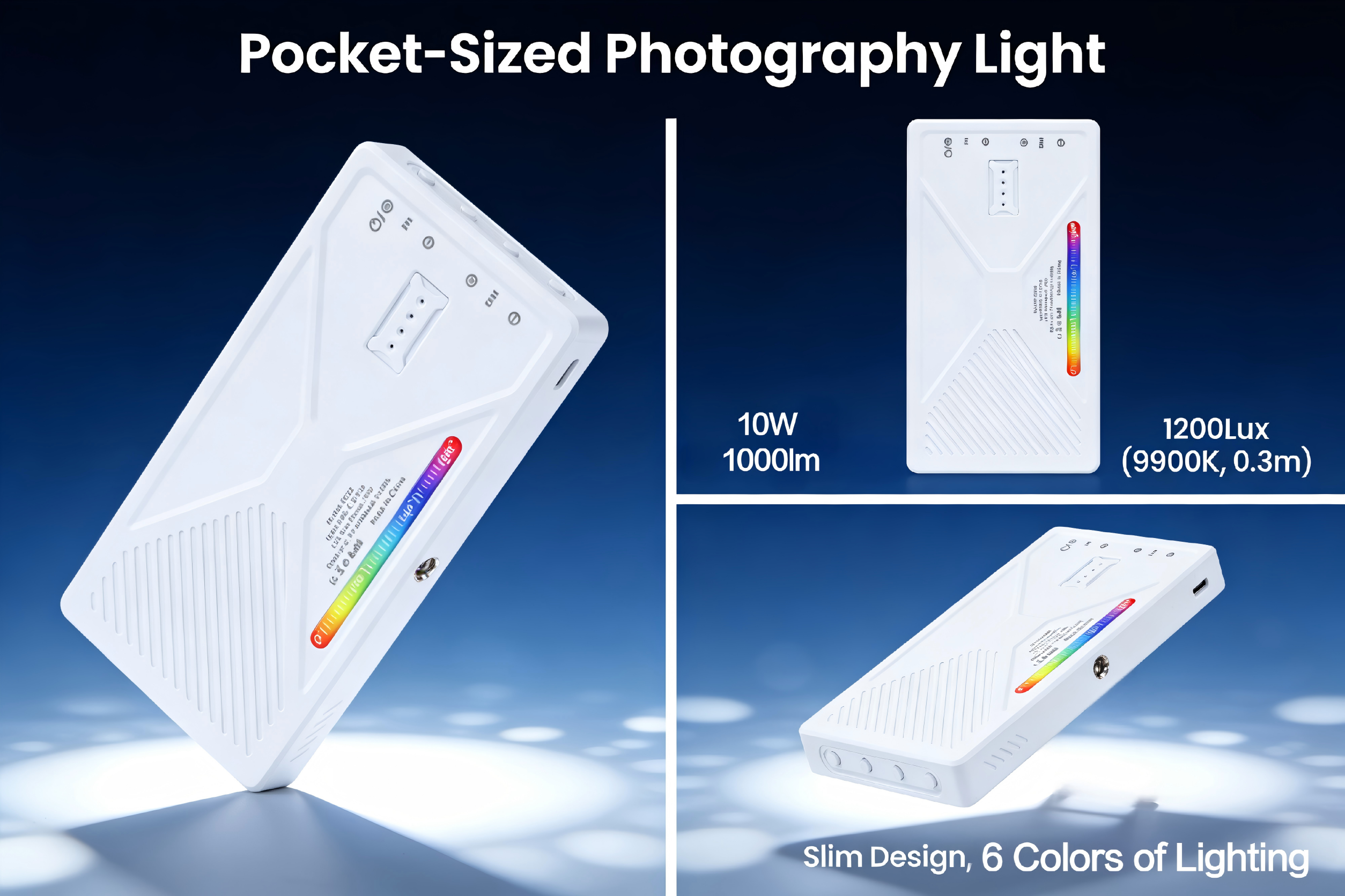 Selfies:Soft, 6 colors of lighting erases harsh shadows and enhances skin tone, delivering flawless, studio-like selfies anywhere.