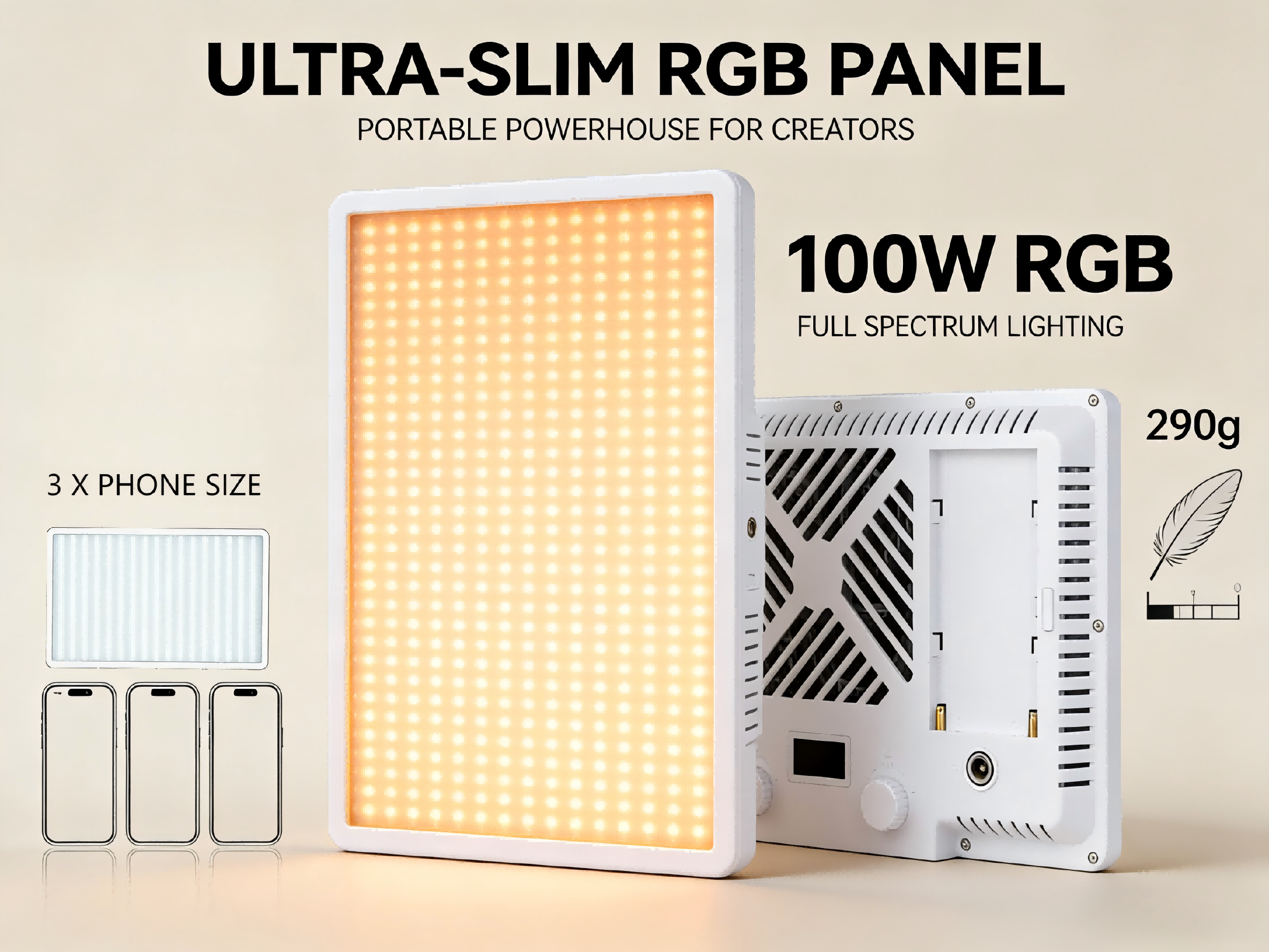 100W Stable Output for All Color Temperatures and RGB